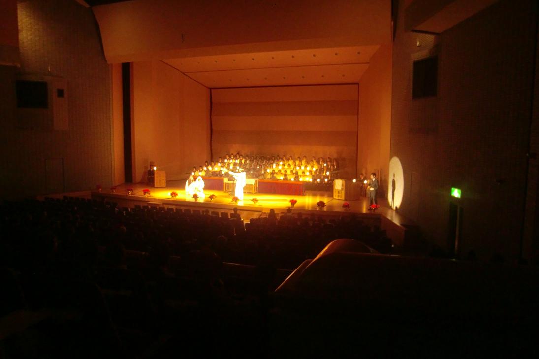 同志社大学今出川キャンパス その授業から有志でこの燭火賛美礼拝の前座をしないか、 授業をとっている生徒の何十人かが集まって